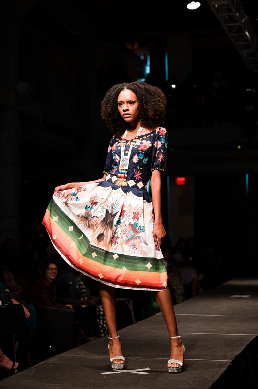 i also added many elements within my designs such as “Achakos” the stars. Initially I designed my whole collection based on the native starlight theme that was held in Minneapolis Minnesota…but when I was designing I was inspired by so many stories and then my designs were born. It’s important for us as indigenous people to sit and listen to our elders because they hold the knowledge and wisdom that we need in order to connect with ourselves and our ancestors and the true being of who we are. During the designing process of this collection I sat with  elders and listened to our ancient achakowak acimowin (star stories) One of my favourite star stories is about the Big Dipper and in this collection you will find hidden constellations that hold great meaning to us as indigenous people.